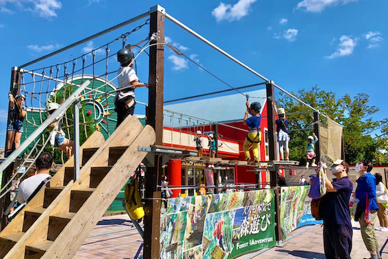 森の中のアウトドアパーク"フォレストアドベンチャー"が、移動型の"モバイルコース"になって万博記念公園に出張!