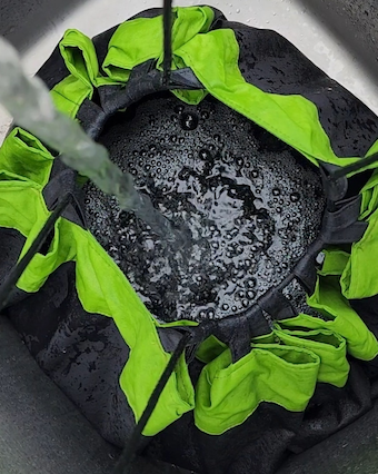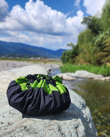 海や川で足を洗いたいとき、袋に水を入れておいて簡単に足を洗うことができます。