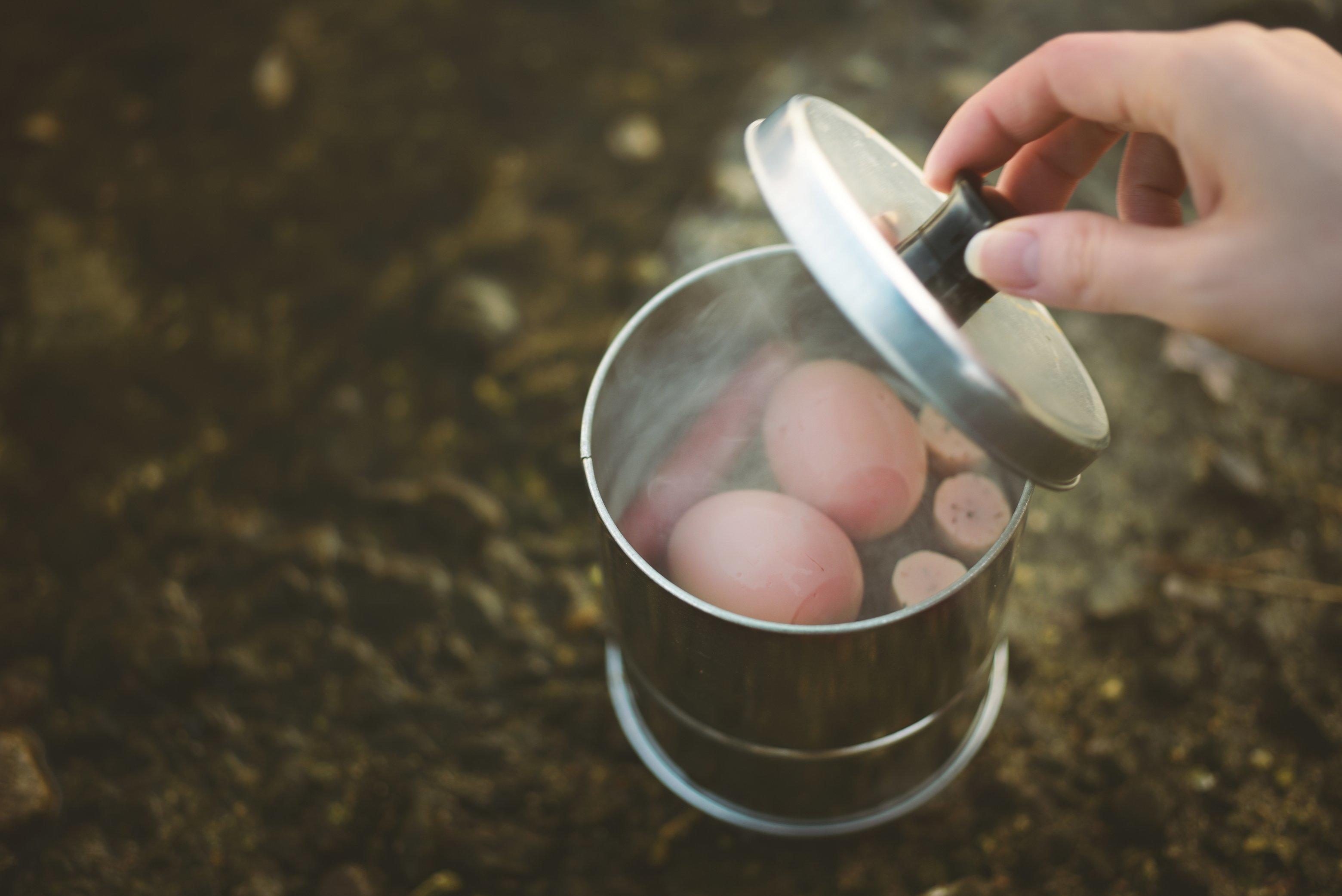 重量237gと軽量で、固形燃料や成形炭などをセットし火をつけるだけで「炊く・