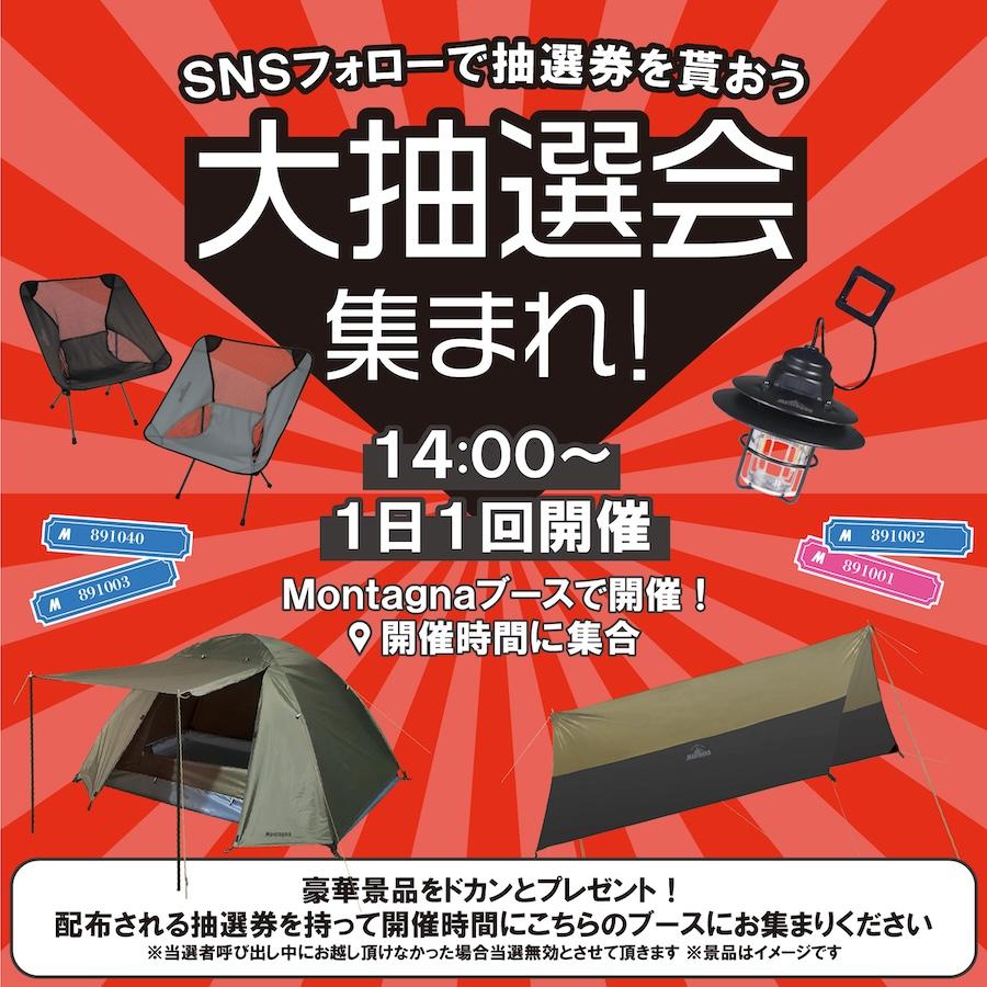デザイン性と機能性を備えたコスパ抜群のラインナップ。 モルックやトランシーバーといった外遊びやキャンプシーンで大活躍の新商品「アウトドアトイ」にも注目。キャンプ初心者からレジャー用途までアウトドア体験を後押しします! ブースでは人気企画「モルックチャレンジ/¥500」を実施。 指定のピンを倒して豪華景品をゲットしよう! 1日1回開催 (14:00-)SNSフォローで無料で参加できる「集まれ!大抽選会」も見逃さんときや!