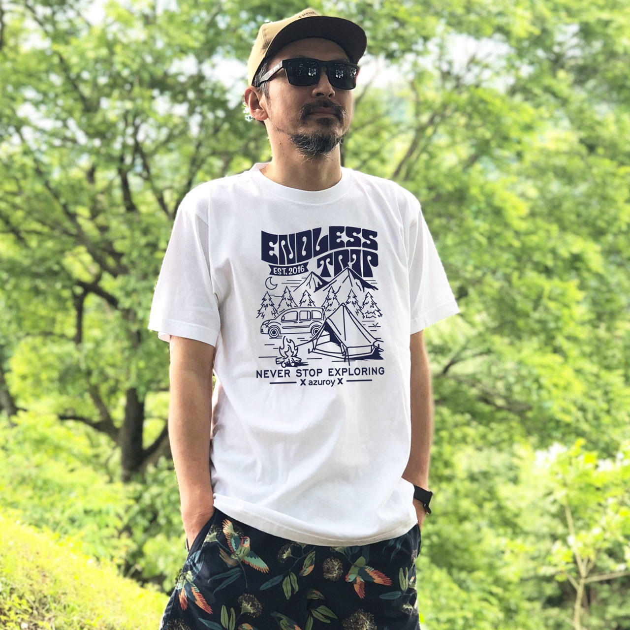 x azuroy xを代表する人気商品のデザインの中の車やテントを好きなものにカスタムオーダーできるTシャツ。