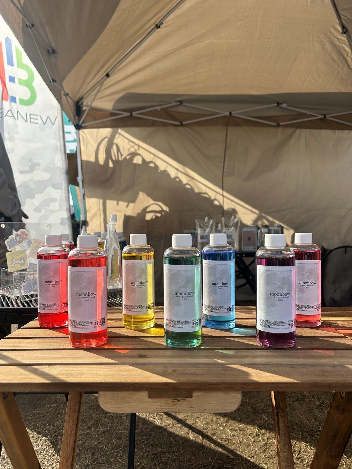 ガラス製のオイルランタを使用して楽しむ、色付きのパラフィンオイル「moonbow」を展示します。本イベントでは調色体験を実施予定!自分好みにパラフィンオイルを色付け、炎と色とともに過ごす時間を作りませんか? Instagram