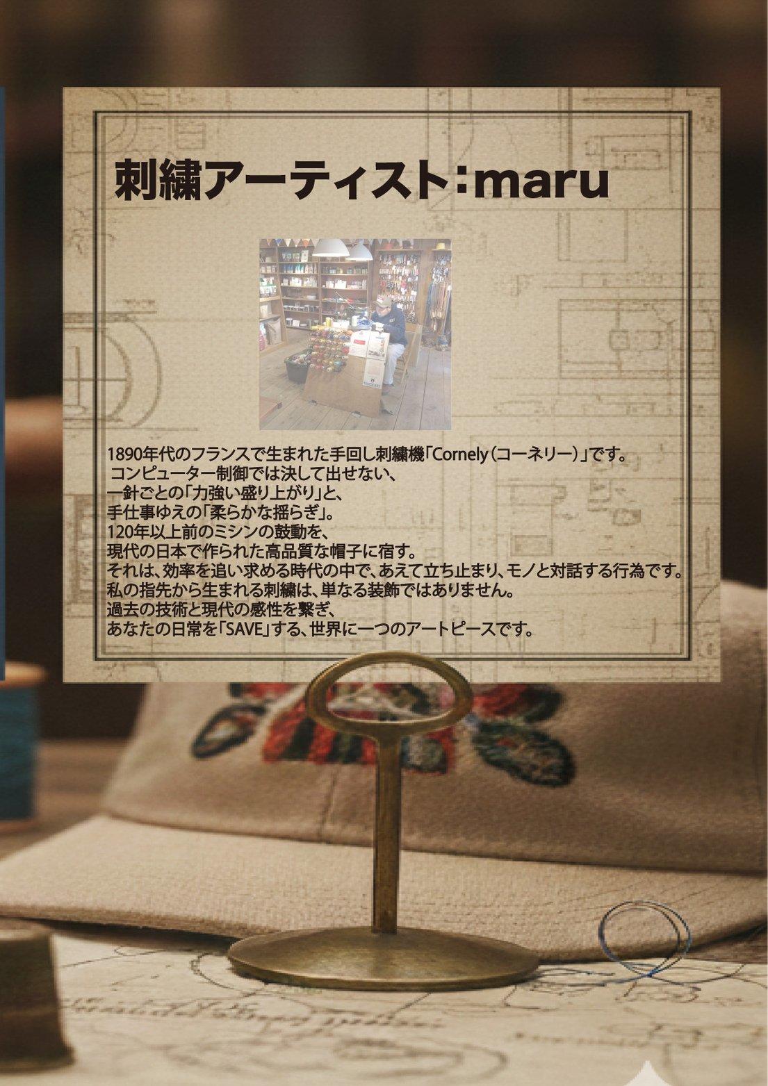 120年前のハンドル刺繍機を使いお客様のオリジナルの刺繍を帽子に施します。