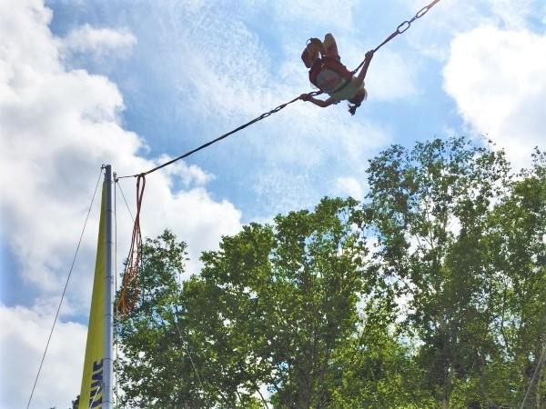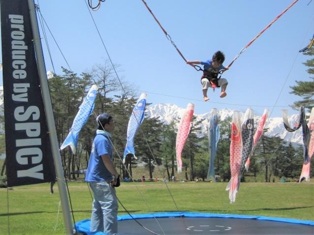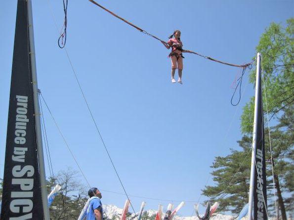 トランポリンとストラップの力で、ビッグジャンプや宙返りができるスカイトランポリン。毎年、各地のイベント会場で大人気です。他では味わえない浮遊感と高揚感で、リピーターが続出。ひとりずつスタッフがサポートするので、初めてでも安心して遊べます。